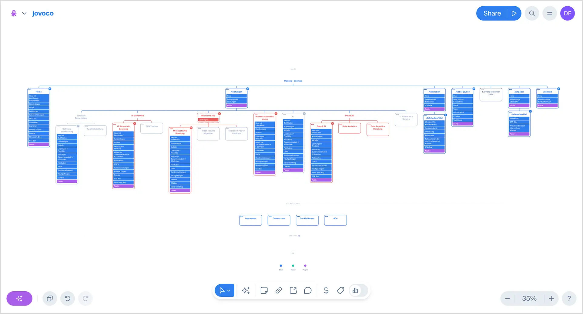 In einem intensiven Workshop lernten wir jovoco.io umfassend kennen, analysierten Marke, Leistungsspektrum, Zielgruppen, Ziele und Konkurrenz. Erwartungen, Designvorlieben und gewünschte Funktionen wurden detailliert dokumentiert.