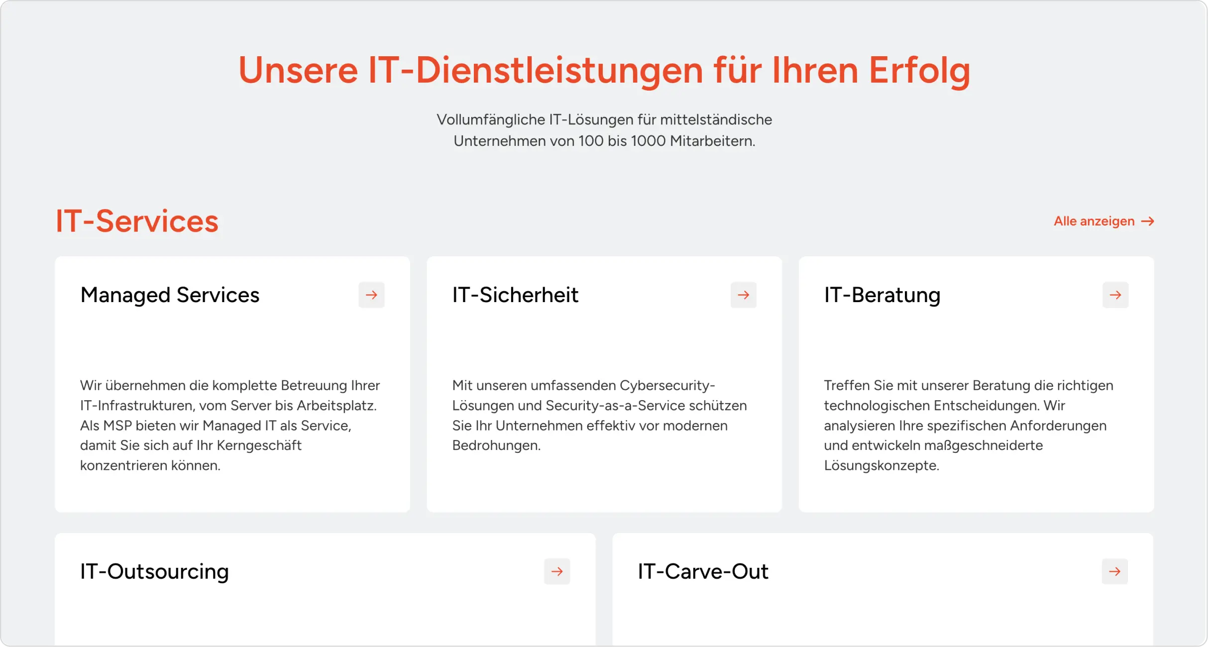 👉 Unübersichtliche Informationsanordnung: Besucher fanden IT-Services wie Managed Services oder IT-Beratung nicht schnell