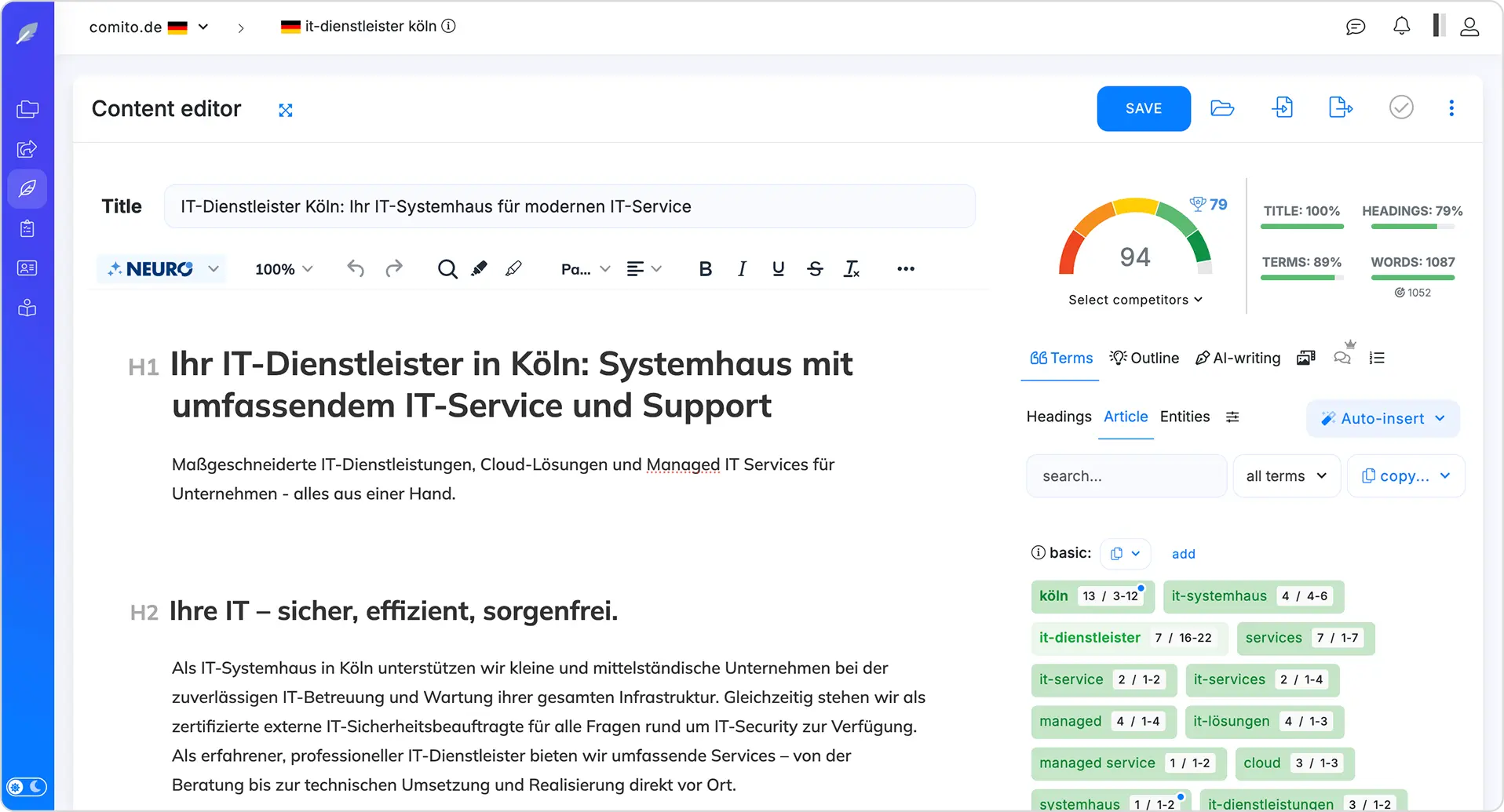 - Relevantere und bessere Texte als der Wettbewerb, um Top-Rankings erzielen können