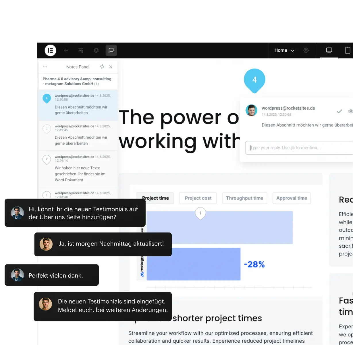 Als Webdesign Agentur aus Hamburg legen wir großen Wert auf Deine Meinung und haben mehrere Revisionen in unseren Prozess integriert. Du bist stark in das Projekt eingebunden und kannst jederzeit Feedback zu Design, Texten und der Website geben, um sicherzustellen, dass das Endprodukt genau Deinen Vorstellungen entspricht.